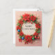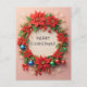 Heller und fröhlicher Weihnachtskranz mit lebhaften Poinsettien, glänzenden Ornamenten, Schneeflocken und Bändern auf einem warmen, weichen Hintergrund, der Urlaubsfreuden und Feiern symbolisiert.