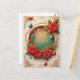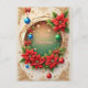 Heller und fröhlicher Weihnachtskranz mit lebhaften Poinsettien, glänzenden Ornamenten, Schneeflocken und Bändern auf einem warmen, weichen Hintergrund, der Urlaubsfreuden und Feiern symbolisiert.
