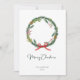 Kiefernblatt Aquarell Weihnachtskranz mit Heiligen, Kiefernzapfen und einem roten Bogen. Anpassbar mit Ihren Feiertaggrüße an Ihre Lieben.