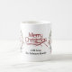Diese wunderschöne Weihnachtsfeier-Tasse besticht durch ein Kranzdesign mit weißen Blume, roten Beeren und Blätter, die den festlichen Geist der Urlaubssaison zum Leben erwecken. In der Mitte der Tasse werden die Worte "Frohe Weihnachten" in einem stilisierten Schriftart in tiefroter Farbe geschrieben, wodurch eine Touch von Eleganz und Wärme hinzugefügt wird. Zusätzlich ist das Wort "Freude" in den Kranz eingebettet und erinnert uns an die Freude und das Glück dieser besonderen Jahreszeit. Um es noch besonderer zu machen, kann der Familienname hinzugefügt werden, wodurch er für viele Jahre zu einem hochgeschätzten Sake wird. Diese Tasse eignet sich hervorragend zum Kakaotrinken am Kaminfeuer oder um an einem kühlen Wintermorgen eine Tasse Tee zu genießen. Es ist sicher eine wunderbare Ergänzung zu jeder Urlaubssammlung und ein nachdenkliches Geschenk für Familie und Freunde.