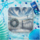 Ein Kranz mit Muscheln und Grünpflanzen schmückt einen Holzzaun, während ein Leuchtturm unter einem Himmel steht, der von dramatischen Wolken und steil ansteigenden Möwen beherrscht wird
