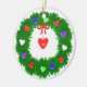 Ornament mit meinem 3D-Kunstwerk eines Weihnachtskranzes mit hübschen, roten, weißen, blauen, lila und grünen Herzen dekoriert.