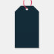 Diese trendigen und stilvollen Weihnachtsgeschenke-Tags verfügen über einen hübschen Weihnachtskranz in Aquarellen mit goldfarbenen Sternakzenten und eleganten Saitenlichtern. Moderne Skriptkalligraphie auf dunkelblauem Hintergrund.