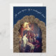 Das Design zeichnet sich durch eine Nachbildung des wunderschönen Gemäldes der Krippe als Hauptbild aus. Das Bild ist von der Eröffnung einer Höhle umgeben, die den Eindruck vermittelt, dass man an diesem wunderschönen Moment vorbeischaut. In obiger Aufschrift steht: "Es kam auf eine Mitternachtsklarheit". Ein großer Stern wird in der Mitte über dem Bild angezeigt. Das gesamte Design zeichnet sich durch den Hintergrund eines tiefblauen Himmels aus. Im Inneren ist Ihr Text in einem hellroten Buchstaben dargestellt, das Bild eines Santa Cap wird unten links angezeigt.