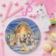 Diese Weihnachtskrippen-Teller haben kinderähnliche Figuren mit den süßesten Gesichtern. Dies ist Teil eines Set für ein Party zu Weihnachten, das die Geburt Christi feiert.
