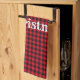 Dieses Küchentuch wird in einem niedlichen Weihnachtsschneeflocken und einem karierten Schwarz-Rot-Büffel-Druck-Design gezeigt. Passen Sie dieses Objekt an oder kaufen Sie, wie es ist. Bild freepik.com all-free-download.com