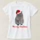 Dieser bezaubernde T - Shirt zeigt ein Foto meiner eigenen Katze, namens Kitty, mit einer Weihnachtsmannmütze auf ihrem Kopf. Es enthält auch Text-Sprichwort "Meowy Christmas".