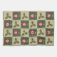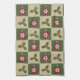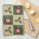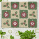 Vier Plätze in Grün und Bräune sind mit roten Ornamenten verziert, die mit weißen Schneeflocken und grünen Heiligen mit roten Beeren dekoriert sind. Weiße Nähte fügen eine dekorative Touch hinzu, die dem sich wiederholenden Muster das Aussehen eines Stepps verleiht und ein sehr gemütliches Gefühl für den Weihnachtsurlaub schafft.