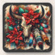 Weihnachtskuh Bull Skull Poinsettias Feathers Getränkeuntersetzer
