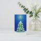 Einfacher natürlicher hübscher Kiefernbaum im Schnee unter einem tiefen blauen Himmel mit einem hellen Weihnachtsstern, der oben glänzt.