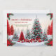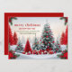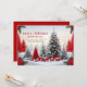 Diese schöne Weihnachtsgrüßkarte bietet eine wunderschöne Weihnachtslandschaft mit rot, weiß und grün die traditionellen Ferienfarben.