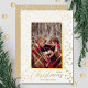 Die Weihnachtsfotos zeigen in Echtfolie Streifen von Weihnachtslichtern um Ihr Lieblingsfoto herum. Frohe Weihnachten und Ihre Namen unten in schicken Silber, Gold oder Rose Gold reale Folie (wählen Sie Folie aus Farbkasten auf Bestellformular). WEITERE Foliendesigns in unserer Kollektion.