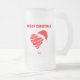 Sie können mein schönes Weihnachtsfest bewundern, das ich "Weihnachtsherz" nenne, ein rot-weißes, gestreiftes Herz, das eine Weihnachtsmannmütze trägt, mit dem Text, der sagt: "Frohe Weihnachten". Diese große mattierte Glasgläser-Tasse, die auf diese große mattierte Tasse aufgestockt wird, ist das perfekte Weihnachtsgeschenk.