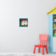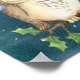 Zwei niedliche beige Eulen mit orangefarbenen Augen, die auf einem braunen Zweig mit grünen Blätter nachts sitzen. Der Hintergrund ist dunkelblau mit weißen Punkten, die wie Sterne aussehen. Die Eulen sehen einander an. Der auf der links trägt eine rosa Kruste mit roten Punkten darauf. Die Eule rechts trägt eine rot-weiße Weihnachtsmannmütze.