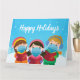 Funny Happy Holidays 2020 Urlaubskarte mit niedlichen Weihnachtsliedern in Gesichtsmasken, um Covid während der Pandemie zu bekämpfen. Bleibe dich während der Quarantäne von Coronavirus sicher, indem du soziale Distanziertheit erlangst und Masken für deine Freunde und Familie trägst. Glückliche Urlaubskarten Spaß. Ideal für ein Unternehmen oder eine Familie.