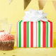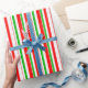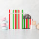 Dieses Design der Weihnachtsfarben zeichnet sich durch rote, weiße und grüne Streifen aus. Es könnte Spaß machen, Papier wie dieses zu verwenden, wenn Geschenke oder Geschenke umhüllt werden, die bei der Feier eines Geburtstages, einer Hochzeit, eines Jahrestages oder einer anderen Veranstaltung gegeben werden.