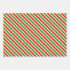 Die Papierfolien sind in grün, weiß und rot inspiriert Streifen gestaltet. Feierliche Verpackungsblätter wie diese können zum Umhüllen von Geschenken oder Geschenken verwendet werden, die bei Weihnachten gegeben werden.