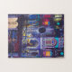Lange Belichtungsfotografie. Traditionelle Weihnachtskrippe aus Krakau, Polen. Farbenfrohe Burg aus farbigem Papier, Pappe und mit Folie dekoriert. Bringen Sie Ferien und festliche Lebensfreude in Ihr Leben!