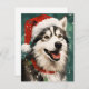 Buntes und fröhliches Weihnachtsdesign mit einem Husky mit einer Weihnachtsmannmütze.