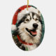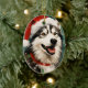 Buntes und fröhliches Weihnachtsdesign mit einem Husky mit einer Weihnachtsmannmütze.