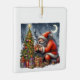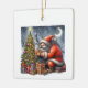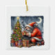 Weihnachtsmann am Abend mit Bäumen und Geschenken Keramikornament