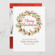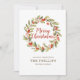 Ein festlicher Urlaub Aquarellkranz-Design, das Ihr Foto auf der Rückseite der Karte zeigt. "Frohe Weihnachten" erscheint in der Mitte des Kranzes in Schriftzypografie Schrift Schrift Schrift Schrift Schrift Schrift Schrift Schrift Schrift Schrift Schrift Schriftzeichen Schrift. Personalisieren Sie dieses einzigartige Urlaubsdesign mit Ihren Familiennamen und Ihrem Foto. Entworfen für Sie von BlackBerry Boulevard.