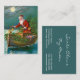 Eine schöne Vintage Geschäftskarte, die Sankt nachts in einem Boot kennzeichnet, füllte mit Spielwaren.