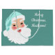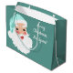 Mit dieser personalisierten Geschenktasche können Sie Weihnachtsgeschenke in stilvollem Ambiente genießen. Es zeigt Ihre eigene Botschaft und eine Vintage Abbildung des Weihnachtsmannes mit einer minzgrünen Weihnachtsmannmütze.