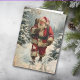 Auf der Vorderseite dieser Holiday-Grußkarte befindet sich ein wunderschönes, Vintages inspiriertes Bild des Weihnachtsmanns, der durch einen schneebedeckten Wald spaziert, um ein Paket an eine abgelegene Zuhause zu liefern. Das Bild ist bedrückt, um ihm eine Old World-Qualität zu verleihen. Die Innenseite der Karte hat mehrere benutzerdefinierte Textfelder, sodass Sie sagen können, was Sie wollen. Einzigartig!