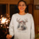 Aquarellmalerei eines Rentiers mit Weihnachtsmütze im Weihnachtsstil