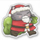 Tabby Chubby Katze in Santa Claus Kostüm, mit einer großen Tüte Geschenke, feiern Weihnachtsfeiertag. Perfekte Chrismtas für Katzenliebhaber.
