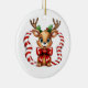 Dieses Weihnachtsschmuck wird mit einem niedlichen Festtagskunst-Kunstdruck von Rentieren gezeigt. Passen Sie dieses Objekt an oder kaufen Sie es wie ein Bild aus dem Lager.