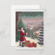 Schöne Vintage Weihnachtskarte mit Weihnachtsmann und Weihnachtsgeschenke in schneebedeckter Landschaft.