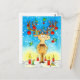 Senden Sie diese niedliche Rentierkarte an Freunde und Familie, um ihnen einen schönen Weihnachtsurlaub zu wünschen! Der Himmel ist dunkelblau und der Boden ist schneebedeckt. Die Szene wird von einigen roten Kerzen beleuchtet, die im Schnee stehend sind. Mäuse und kleine grüne Vögel haben sich versammelt, um zu Weihnachten die Geweihe eines Hirsches oder Rentiers zu schmücken. Der Rentier ist auf seinen Hinterbeinen stehend, lächelt und schaut zu seinen Geweihten hinauf. Hier sitzen kleine graue Mäuse in den Wüsten, setzen rote Weihnachtsschmuck und Töne auf, die ihnen von kleinen grünen Vögeln gebracht werden. Andere Mäuse und Vögel sind im Schnee am Fuß der Rentiere stehend und schauen mit Bewunderung und Wunder auf ihre Arbeit.