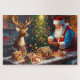 Weihnachtsmann und Rentiere machen Lebkuchenhaus