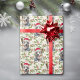Ein Porträt eines wunderschönen australischen Rinderhundes mit einem rot-weißen Weihnachtsmann, das im Muster dieses Geschenkpapier für den Urlaub enthalten ist. Das Portrait wird auf einem Hintergrund von grünen heiligen Blätter und roten Beeren platziert.