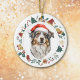 Hier ist ein niedliches personalisiertes Ornament für alle, die einen australischen Schäferhund Lieben haben. Die Vorderseite hat eine Aquarellblau Aussie mit einer Weihnachtsmannmütze. Das Bild ist in einem farbenfrohen Kreiskranz gerahmt, der aus verschiedenen Holiday-Bildern besteht, darunter ein Schneemann, Glocken, Bonbons, Strumpf, Heilige und vieles mehr! Auf der Rückseite des Ornaments befindet sich das gleiche Kranzbild mit dem eigenen Text in grün und rot.