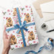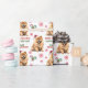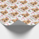 Das wiederholte Muster auf diesem Weihnachtsverpackungspapier enthält ein Bild eines wunderschönen Chow Chow Hundes mit einer roten Weihnachtsmannmütze. Roter und grüner Text sagt MERRY CHRISTMAS", und "Happy New Year" mit Ihrer eigenen Unterschrift unten. Weitere Bilder im Muster sind u.a. rote dekorative Schneeflocken und Bonbons.