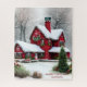Ein Winterwunderland mit schneebedeckten Häusern und Bäumen, die zu Weihnachten verziert sind.