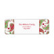 Weihnachts-Adressetikett mit rotem und grünem Paisley-Design und rotem Text.
