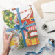 Maßgeschneidertes Wrapping Papier mit einem matten Finish Weihnachtsmarkt Design mit Familie genussvoll während Weihnachts-Shopping