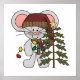 Eine entzückende Weihnachtsmaus in einer roten Strumpfkappe setzt die Schnur der Weihnachtslichter auf den Feiertagsbaum auf Mäusethema-Feiertag T-Shirts, Becher, Karten, Aufkleber, Taschentaschen, Magneten, keychains, Andenkenverzierungen und -kästen, Wanduhren und andere Feiertagseinzelteile.