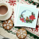 Niedliche braune Maus auf einem Weihnachtskranz. Ornamente, Poinsettien und blauer keltischer Knoten arbeiten am Weihnachtskranz.