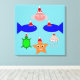Dieser phantastische Leinwand zeigt eine Sammlung von Meereslebewesen, die Weihnachtsmannmützen tragen. Die Meerestiere umfassen blaue Fische, eine frech aussehende kleine rosa Krabbe, eine gelbe Seesterne, eine funkelnd Qualle und eine niedliche kleine grüne Schildkröte.