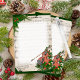 Dieses Vintage Design besticht durch eine Violine, die mit heiligen Blätter, Beeren und Kiefernspießen dekoriert ist. Im Hintergrund befindet sich ein altmodischer Scroll mit Weihnachtsblättern, der auch mit Kiefernspießen und heiligen Blätter geschmückt ist. Das festliche Weihnachtsdesign hat einen dunkelgrünen Hintergrund. Die Mitte ist verblasst, um das Schreiben zu erleichtern.