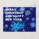 Tief blaue Weihnachtsnachtsnacht und starker Schneefall. Schöne Schneeflocken groß und klein. Frohe Weihnachten und viel Glück ins neue Jahr! Lass deine besten Wünsche wahr werden! Lass Gesundheit, Liebe und Wohlstand bei dir sein! Horizontale oder landschaftlich orientierte Produkte und Souvenirs. Postcard Sie können ändern oder löschen Sie den Vorlagentext Frohe Weihnachten und glückliches Neues Jahr