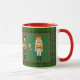 Eine festliche Gruppe von Weihnachtsaugern auf einem klassischen grünen karierten Hintergrund.