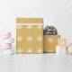 Goldweihnachtspapier mit weißen Schneeflocken.