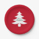 Roter Weihnachtspapier-Teller | Weihnachtsbaum mit Gruß. Niedliche Partyversorgungen für die Feiertage. Wegwerfabendessen-Partyversorgungen druckten für Spaß WeihnachtsPartys. Starke Qualität passend für Erwachsene und Kinder. Ändern Sie die Quantität, um den billigsten Preis pro Platte zu erhalten. Kundenspezifischer personalisierter Grußtext und -farben. Elegante Typografie. Nobler schicker roter und weißer Entwurf. Grüne und rote Farben.