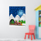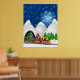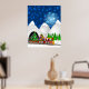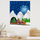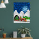 Weihnachtszug mit Weihnachtsmann, Rentier, Baum, Ornamente, Geschenke, Geschenke und Schneemann auf einem Blue Snowy Night Background Poster